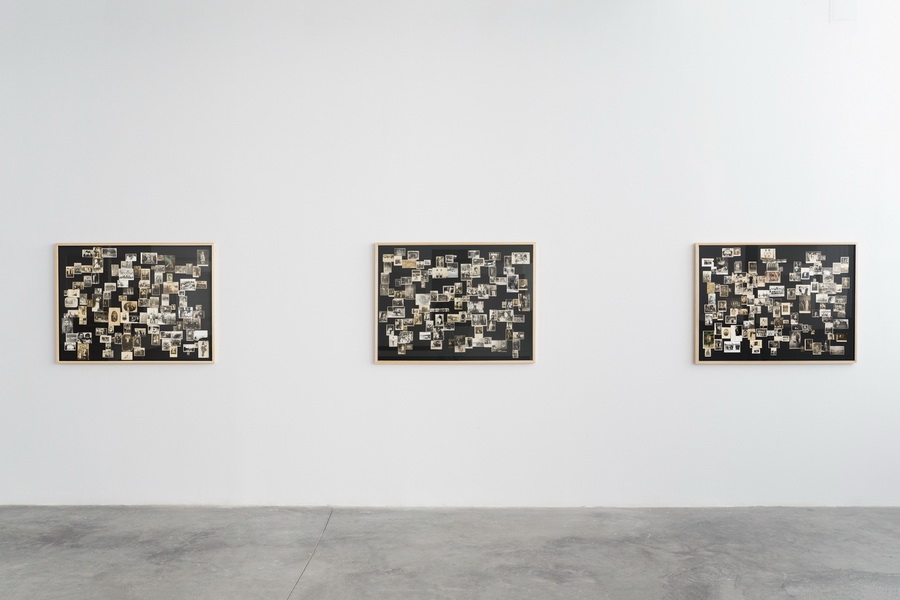 3 panels with found family photographs | 90 x 120 cm (the cracks occurred in the materiality of the printed image are taken as a structuring principle)