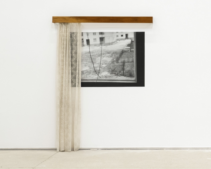 Now nothing is revealed but time | 2023 mixed media (digital print on self-adhesive vinyl, wooden window cornice, curtain) | 180 x 220 cm